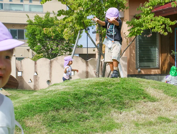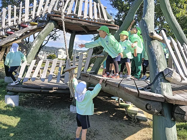 木のぬくもりを手で感じながら、 自分の力で登るために 考えたり工夫したり、