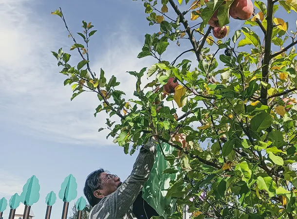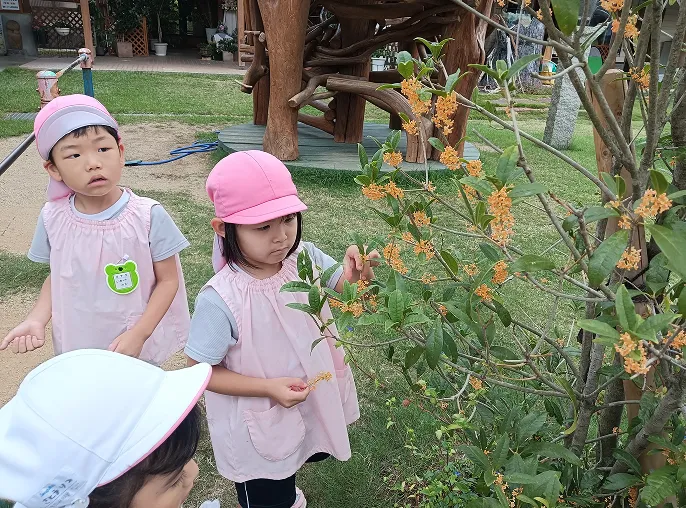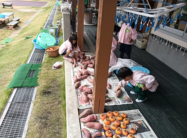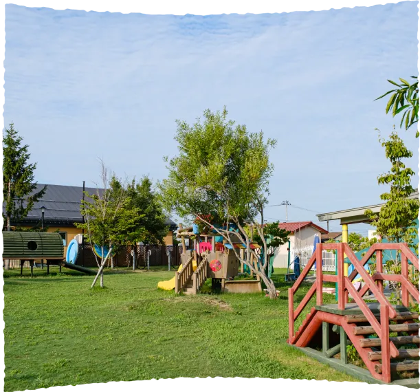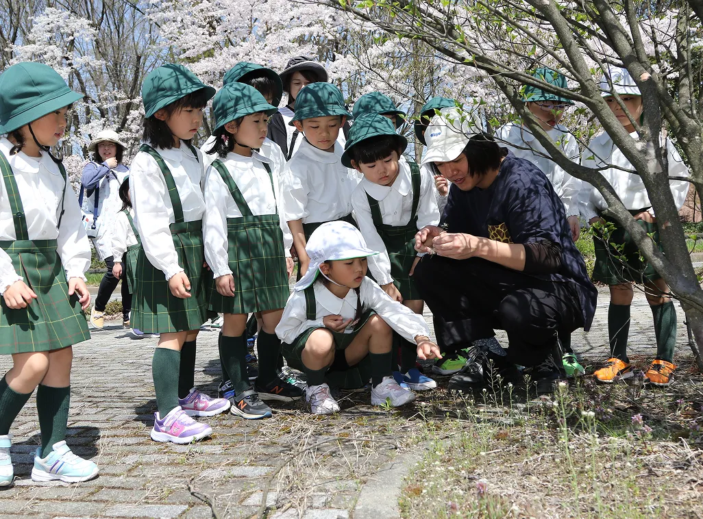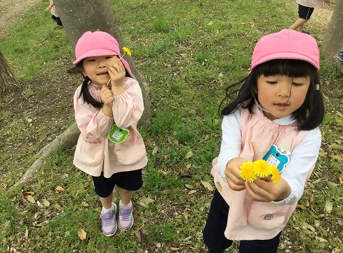 桜やりんご、柿など 四季を感じる植物が、 園庭にはあふれていて