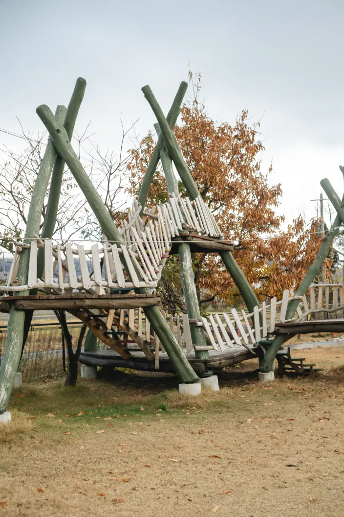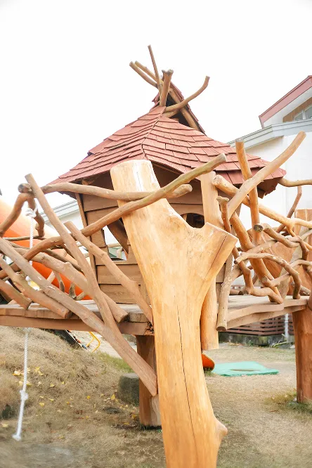 世界にひとつしかない ここで遊ぶためだけに作られた、 天然木の遊具たち。