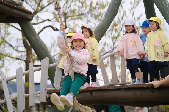 ロープを使いこなしながら、 体全体を使い遊んだり、