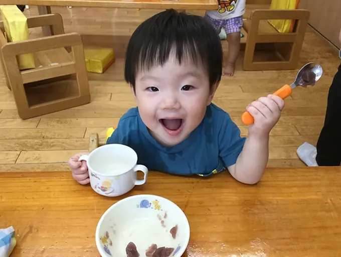 - おいしい手作りおやつをいただきます。おやつの後は遊びの時間です。