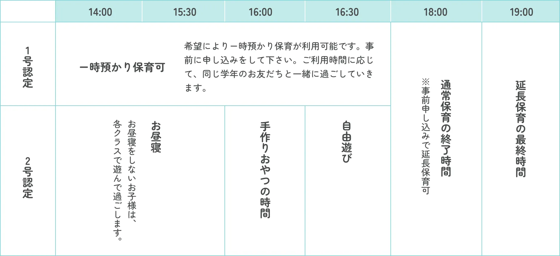 - 一日の保育の流れは、子どもの様子、季節、行事の予定等により毎日少しずつ調整しています。